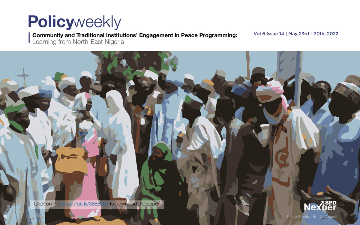 Policy Weekly Community and Traditional Institutions’ Engagement in Peace Programming: Learning from North-East Nigeria by nextierspd May 23, 2022 written by nextierspd May 23, 2022 112 Insurgency, banditry, and related conflicts in North-East Nigeria have led to the loss of lives, population displacement and social stress. The United Nations Development Program (UNDP) estimates the number of deaths directly related to the conflicts to be 350,000, while 314,000 people died from indirect causes. This consequence of the conflict has attracted several local and international interventions for peace and recovery. For instance, the Early Recovery Programme for the North-East in the three states of Adamawa, Borno and Yobe, funded by the government of Norway, is being implemented by the UNDP. Also, the Multi-Sectoral Crisis Recovery Project of the International Development Association is being implemented in the region. These and several other international interventions add to the work of the North-East Development Commission (NEDC), a Federal Government intervention institution for rebuilding the North-East and different state government recovery programmes in the affected states. The interventions are, in good part, peacebuilding initiatives to support security efforts in the region. In the light of the multiple peace efforts, a study that explored the perspectives of the affected communities on the peacebuilding interventions in the North-East by the Kukah Centre reported some of their core findings could be grounded on the role and importance of traditional institutions in peace programming. Hence, this edition of the Nextier SPD Policy Weekly considers the values of engaging communities and traditional institutions and harnessing the outcome of the engagement for sustainable peace in North-West and Central Nigeria, using the North-East as the case study. Click here to download report. 0 comment 0 FacebookTwitterPinterestEmail nextierspd previous post Fogs of Violence next post Education on the Brink? You may also like Youth Bulge, Governance and Security in Post-conflict Sierra... July 3, 2024 No Face, No Case: The Realities of Gender-sensitive... June 28, 2024 Strengthening Humanitarian Response in Post-Conflict Communities in Nigeria:... June 21, 2024 Crude Oil Theft and Illegal Refining in Nigeria:... June 13, 2024 Crude Oil Theft and Illegal Refining in Nigeria:... June 5, 2024 Navigating Autonomy in Nigeria’s LGAs: Challenges and Opportunities May 31, 2024 Rethinking Youth Engagement in Peacebuilding May 24, 2024 Strengthening Enablers of Peace and Security in the... May 17, 2024 Towards a Paradigm Shift in Conflict Management in... May 7, 2024 Redefining Slum Dwellers: Insights into Nigeria’s Urban Challenges... April 24, 2024