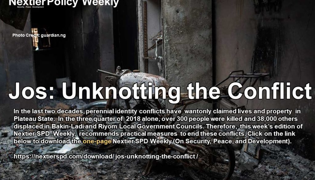 Policy Weekly Jos: Unknotting the Conflict by nextierspd January 5, 2020 written by nextierspd January 5, 2020 141 In the last two decades, perennial identity conflicts have wantonly claimed lives and property in Plateau State. In the three quarter of 2018 alone, over 300 people were killed and 38,000 others displaced in Bakin-Ladi and Riyom Local Government Councils. Therefore, this week’s edition of Nextier SPD Policy Weekly, recommends practical measures to end these conflicts. Click here to download report. 0 comment 0 FacebookTwitterPinterestEmail nextierspd previous post Pushing Over the Cliff next post SALW: Cage the Demon You may also like Youth Bulge, Governance and Security in Post-conflict Sierra... July 3, 2024 No Face, No Case: The Realities of Gender-sensitive... June 28, 2024 Strengthening Humanitarian Response in Post-Conflict Communities in Nigeria:... June 21, 2024 Crude Oil Theft and Illegal Refining in Nigeria:... June 13, 2024 Crude Oil Theft and Illegal Refining in Nigeria:... June 5, 2024 Navigating Autonomy in Nigeria’s LGAs: Challenges and Opportunities May 31, 2024 Rethinking Youth Engagement in Peacebuilding May 24, 2024 Strengthening Enablers of Peace and Security in the... May 17, 2024 Towards a Paradigm Shift in Conflict Management in... May 7, 2024 Redefining Slum Dwellers: Insights into Nigeria’s Urban Challenges... April 24, 2024 Leave a Comment Cancel Reply Save my name, email, and website in this browser for the next time I comment.