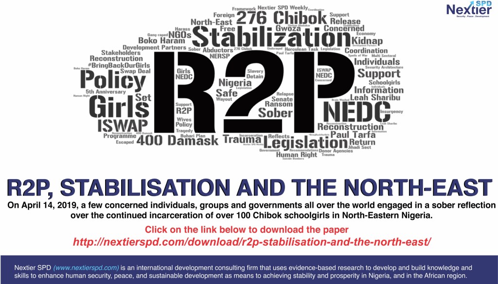 Policy Weekly R2P, Stabilisation and The North-East by nextierspd January 20, 2020 written by nextierspd January 20, 2020 132 On April 14, 2019, a few concerned individuals, groups and governments all over the world engaged in a sober reflection over the continued incarceration of over 100 Chibok schoolgirls in North-Eastern Nigeria. This was on the occasion of the fifth anniversary of the mass kidnap of the schoolgirls by Boko Haram insurgents. Slowly but steadily, the abduction and its concomitant trauma has faded from the minds of many. Though the Nigerian government had negotiated the release of some of the 276 Chibok schoolgirls and a few escaped or were set free by their abductors. Five years on, the whereabouts and fate of over 100 of the victims remain unknown. Relying on the doctrine of responsibility to protect (R2P), and stabilisation programme, this edition of Nextier SPD Weekly reflects on the continued incarceration of the Chibok schoolgirls, the role of the North East Development Commission(NEDC) in stabilising the region and makes recommendations on good practice for the agency. Click here to download report. 0 comment 0 FacebookTwitterPinterestEmail nextierspd previous post Reconstructing the North-East next post Education, De-radicalisation and The North-East You may also like Youth Bulge, Governance and Security in Post-conflict Sierra... July 3, 2024 No Face, No Case: The Realities of Gender-sensitive... June 28, 2024 Strengthening Humanitarian Response in Post-Conflict Communities in Nigeria:... June 21, 2024 Crude Oil Theft and Illegal Refining in Nigeria:... June 13, 2024 Crude Oil Theft and Illegal Refining in Nigeria:... June 5, 2024 Navigating Autonomy in Nigeria’s LGAs: Challenges and Opportunities May 31, 2024 Rethinking Youth Engagement in Peacebuilding May 24, 2024 Strengthening Enablers of Peace and Security in the... May 17, 2024 Towards a Paradigm Shift in Conflict Management in... May 7, 2024 Redefining Slum Dwellers: Insights into Nigeria’s Urban Challenges... April 24, 2024 Leave a Comment Cancel Reply Save my name, email, and website in this browser for the next time I comment.