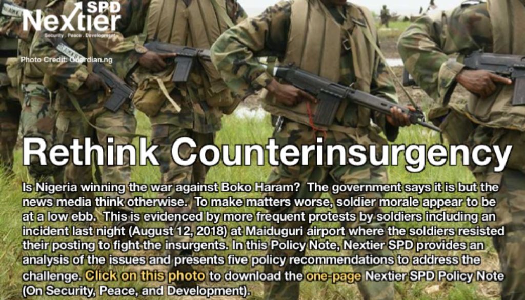 After 9 years of fierce battle to eliminate the insurgent activities of Boko Haram terrorists in the North-East region, Nigeria’s counter-insurgency strategies seems to be in a constant fluctuation mode.  Gains made in countering the insurgency are erased in a day or two. The August 13, 2018, Nextier SPD Policy Note reviews this development and offers policy advice on what should be done by the Nigerian government if the war must be won.